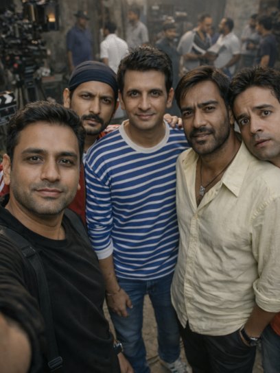 Ultra-realistic Golmaal (2006) behind-the-scenes cinematic selfie